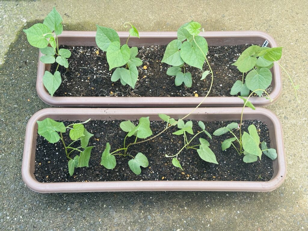 間引きした朝顔をもう一つのプランターに植え替える事にします。