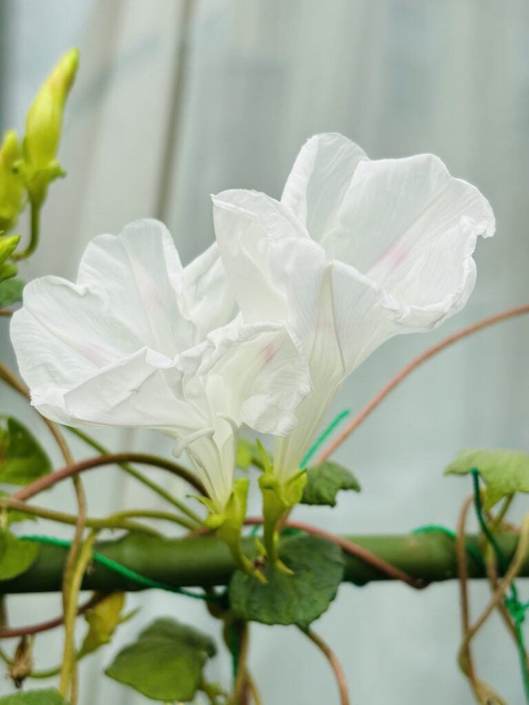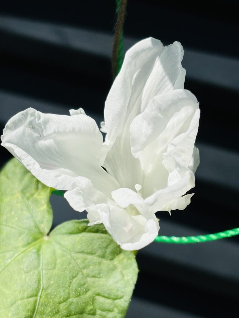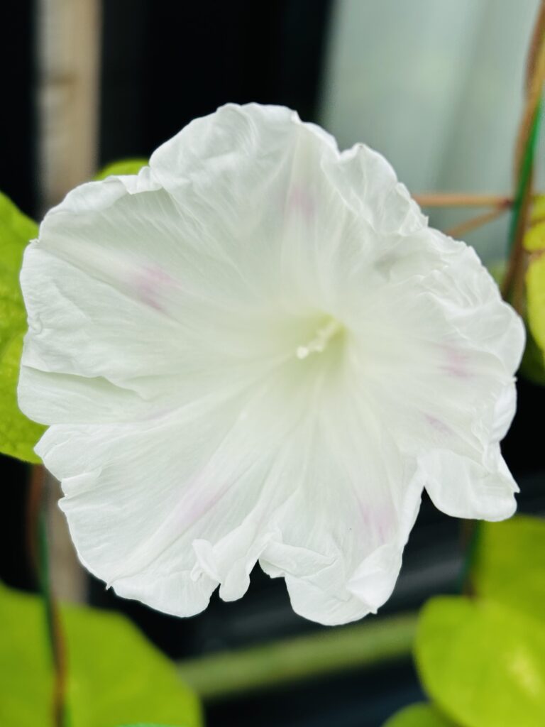 白くて、花びらに小さなピンク色。とても可愛らしい朝顔です。